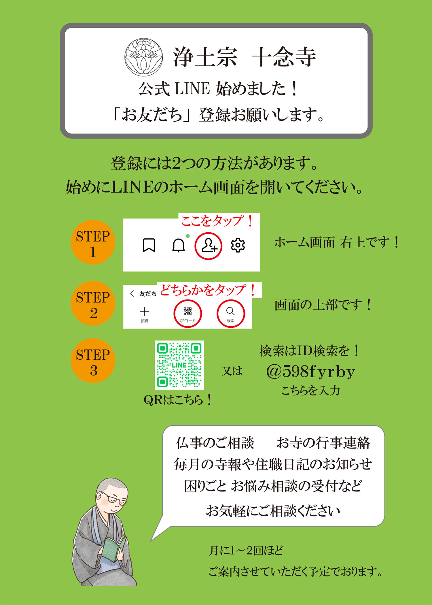 サラリーマン家庭で育った私は東日本大震災で被災し、ボランティア活動を機に僧侶の道を志しました。苦楽を過ごした宮城の地で、震災で被災し命を落とされた方々を弔うため、そして、誰もが救われる法然上人のみ教えを宮城の皆様へお伝えするため、多くの皆様のご支援を得て、宮城県では初めての開教寺院として歩むことになりました。
